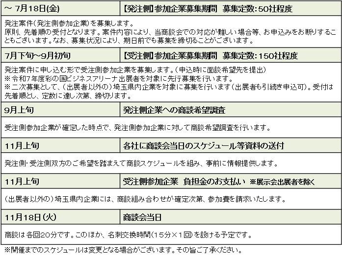 ※「令和7年度彩の国ビジネスアリーナ」の出展者(県外企業を含む)に対する募集を先行して開始。定数に達し次第、締切。