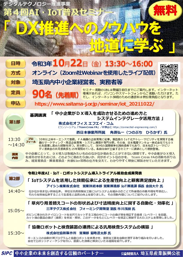 4)第4回 AI・IoT普及セミナー/令和3年 10月22日(金)開催