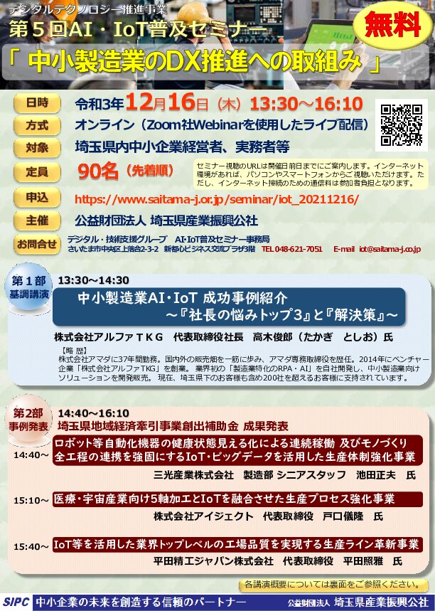 5)第5回 AI・IoT普及セミナー/令和3年 12月16日(木)開催