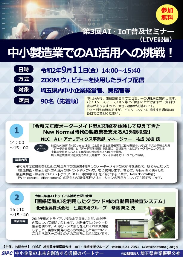 第3回 AI・IoT普及セミナー/令和2年 09月11日(金)開催