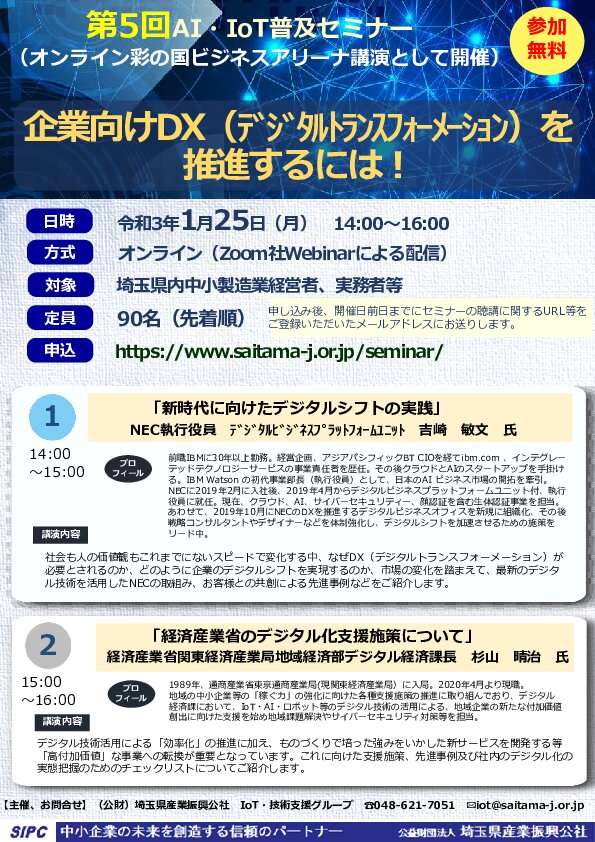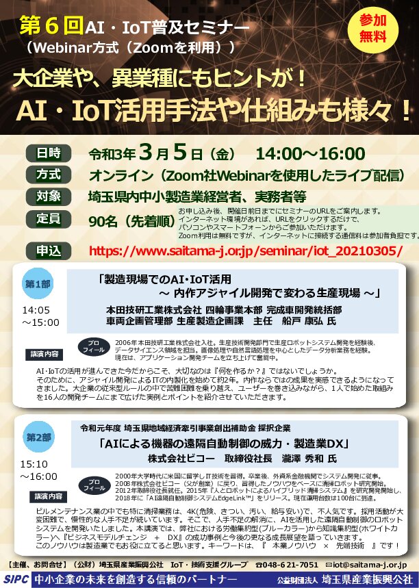 6)第6回 AI・IoT普及セミナー/令和3年 01月25日(火)~02月14日(月)開催