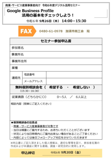 場所:加須市商工会館 3階 研修センター(リアル開催のみ)