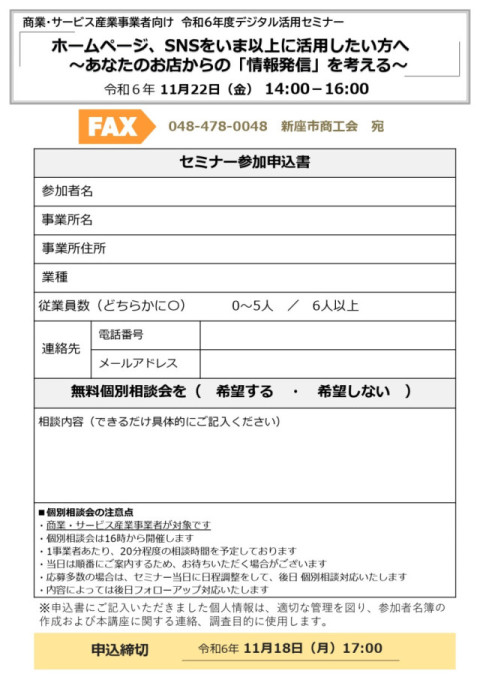 <令和6年度デジタル活用セミナー「ホームページ、SNSをいま以上に活用したい方へ~あなたのお店からの『情報発信』を考える~」>※終了しました