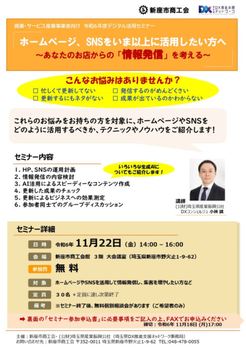 主催:新座市商工会・(公財)埼玉県産業振興公社(埼玉県DX推進支援ネットワーク事務局)