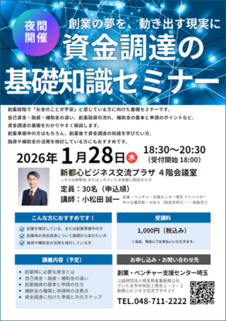 創業段階で「お金のことが不安」と感じている方に向けた基礎セミナーです。