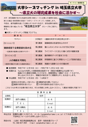 【募集中】大学シーズマッチング in 埼玉県立大学 ~県立大の研究成果を社会に活かす~ ※動画オンライン配信