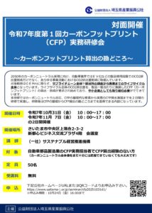 【募集終了】「令和7年度 第1回カーボンフットプリント(CFP)実務研修会(対面開催)」のご案内