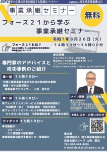 新規後継者グループ募集のための事業承継セミナーのご案内(「フォース21から学ぶ事業承継セミナー」を開催します)【開催日:8月26日】