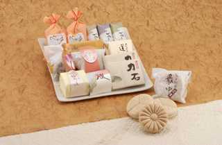 - 全国菓子博覧会で総裁賞を受賞した「おき川」をはじめ「彩の国姫街道」「力石」「べに花の郷」「彩の福もち」「中山道道しるべ」等々地元彩の国にちなんだ菓子が店内に並んでいる。
