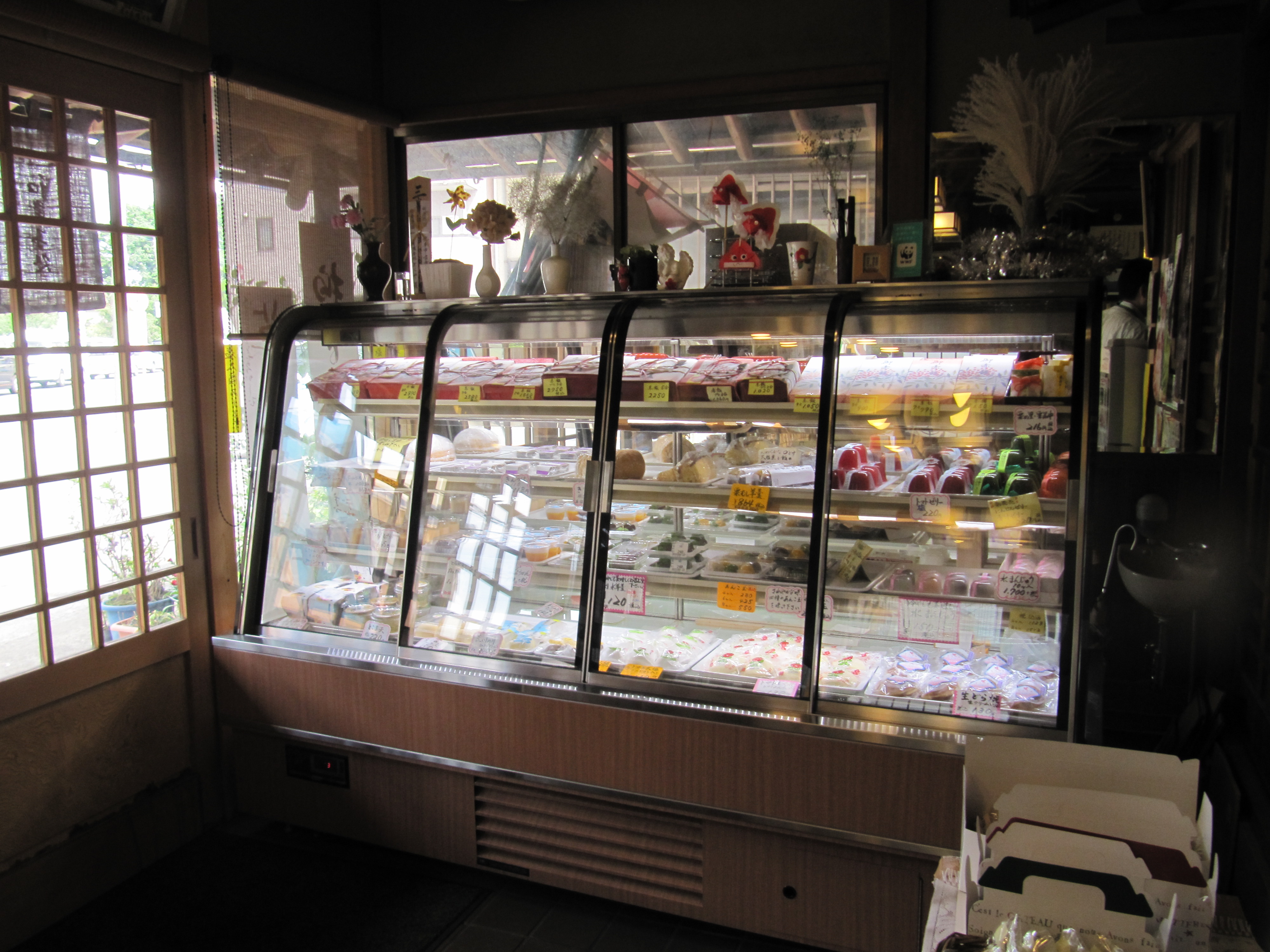 和菓子の並ぶショーケースには、屋久杉が使われている。