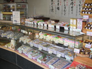 - 和菓子の他、全日本最優秀賞受賞のカステラや巨峰ゼリーなども好評である。