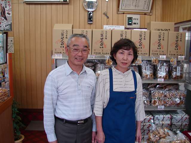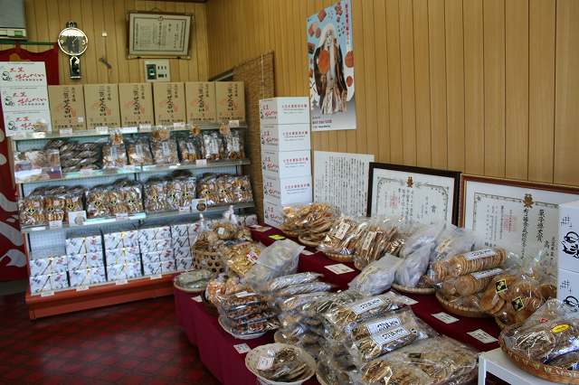 - 全ての商品を、自家製造で販売している。お勧めは醤油味、胡麻味、ザラメのせんべいでいずれも四半世紀以上続けている。その他60種類の煎餅も販売している。おすすめとする3品は、久喜市推奨特産品に認定された。