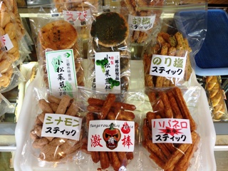 • その一方で、新しい味、揚スティック(醤油・塩・ガーリック胡椒・ピリ辛・カレー・シナモン・激辛ハバネロ・自称日本一辛い煎餅激痛棒)や、三郷市特産の小松菜を煎餅生地に混ぜて焼き上げた「小松菜煎餅」など、子供からお年寄りの方まで「おいしい」と言われる煎餅を造っている。
