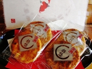 - 昭和27年創業以来地元のお客様に支えられ、変わらぬ2種類のみ(青海苔入り、海苔なし)の堅焼せんべいを、添加物、保存料等を一切使用せずに作りあげられた生地から製造し、1枚50円(税抜き価格)で販売している。