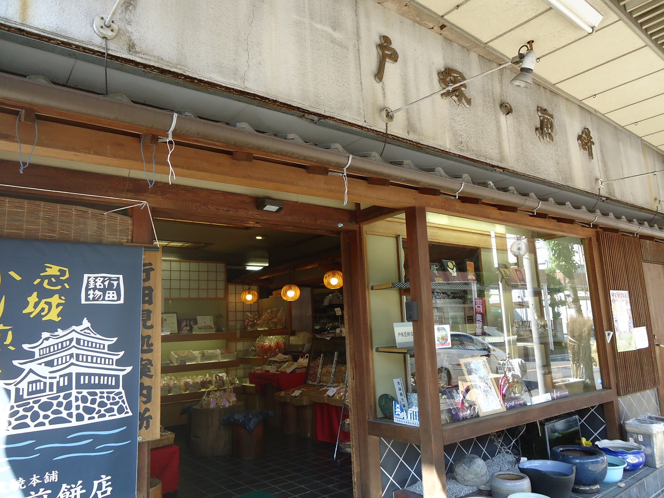 越後備長炭を使った炭火焼の堅焼き煎餅。上質のお米を粗挽きにして杵で丁寧について焼いているので、煎餅の芯まできつね色で香ばしさが口いっぱいに広がります。看板商品の「小判煎餅」はちょっと小ぶりで食べやすく、ついつい手が伸びます。行田の新しい特産物の「青大豆」を使った煎餅もあります。
