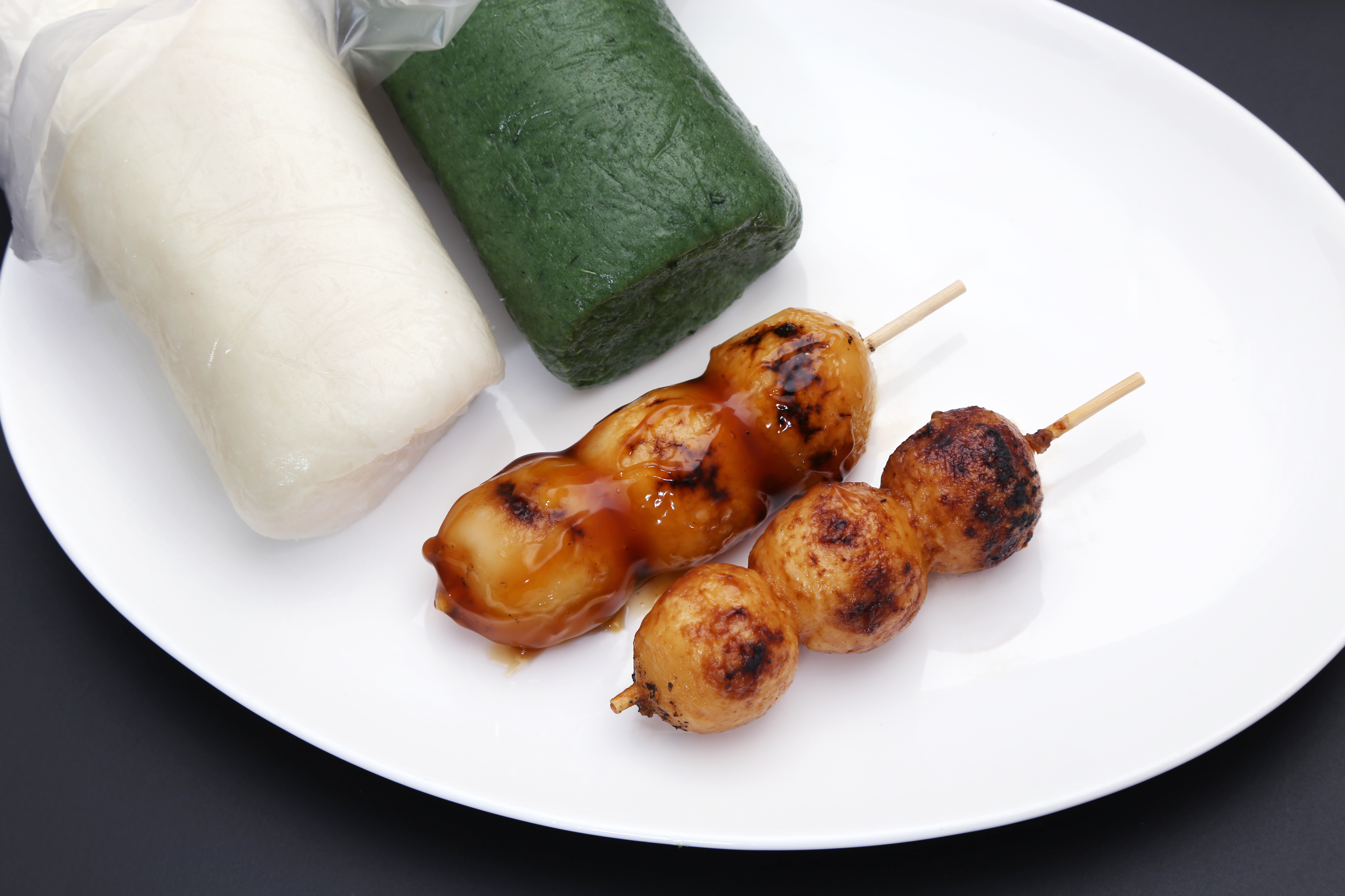 団子(生醤油・甘ダレ)、団子生地(白・よもぎ) |