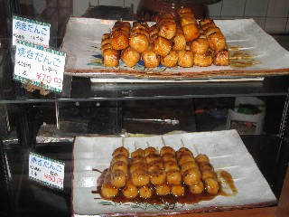 - 一番におすすめ商品は団子。みたらしと磯辺、醤油があり、遠方からの来客もあるなど、ファンが多い。