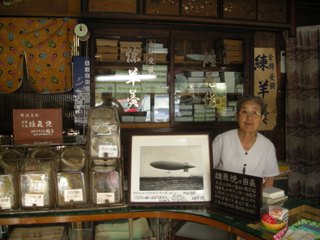 - また、当時の所沢では焼き団子が名物(現在も)で、大正5年所沢飛行場で作られた日本初の飛行船「雄飛号」が所沢〜大阪間の飛行に成功。同じ大正5年創業の「御菓子司 梅月」の初代、三之助さんがそれを記念し、炭火で焼いた団子をまねて、雄飛号をかたどった紡鐘形の和菓子を串に刺して炭火で焼き上げ出来たのが焼菓子「雄飛焼」。一個一個、串にさして炭火で焼く方法は当時からのままで、香ばしく風味がありシナモンがまぶしてあるこのお菓子は大正当時モダンなものとされていて軍人や町を訪れる人々に珍重されていたそうである。昭和5年には「帝國優良品大審査会壱等賞金牌」を受賞した逸品。