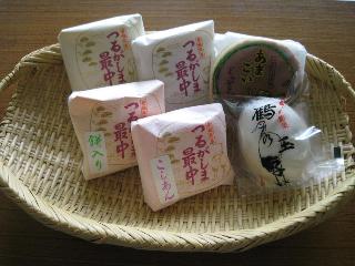 - 登録商標である「つるがしま最中」は鶴ヶ島の由来である鶴と松をかたどった小倉、餅入り、栗きんとん入りの三種類が揃っている。他に、つるがしま羊羹、鶴の玉子、鶴ヶ島小町などがあり、また食べたくなる味である。