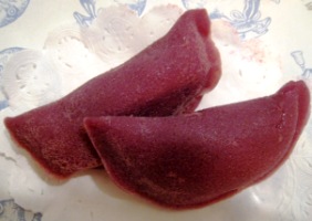 ムラサキイモを使ったやわらかくモチモチした皮の中に、十勝産小豆と生クリームを混ぜたしっとり甘いあんが包みこまれている。和洋折衷のおいしさが人気の逸品。