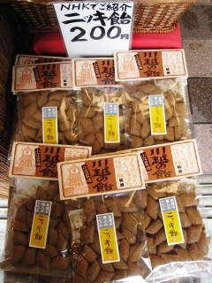 - おすすめは天然のニッキを用いたニッキ飴。きなこ飴や芋ようかんも人気があり、どれも素材と製法へのこだわりが感じられる商品となっている。